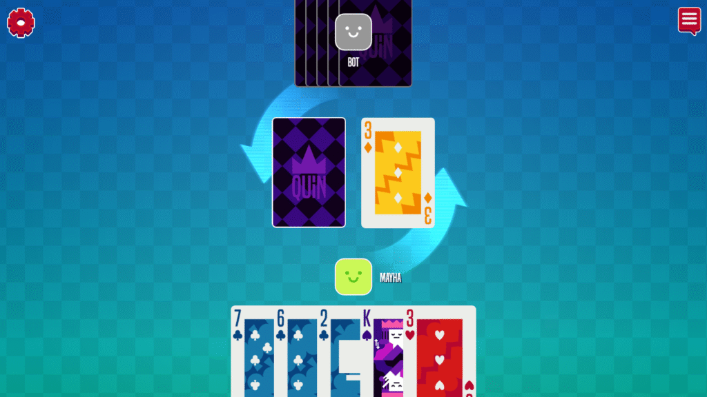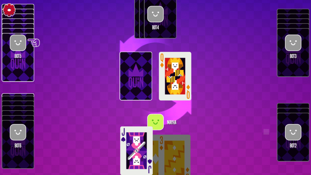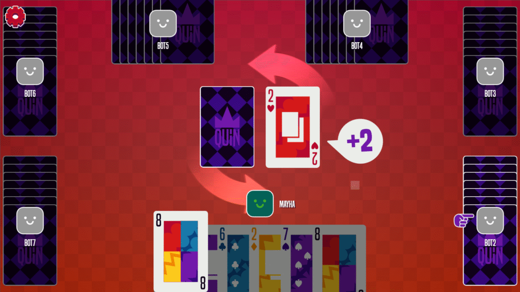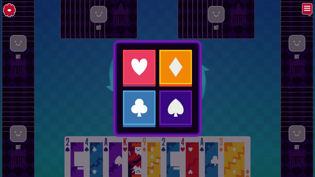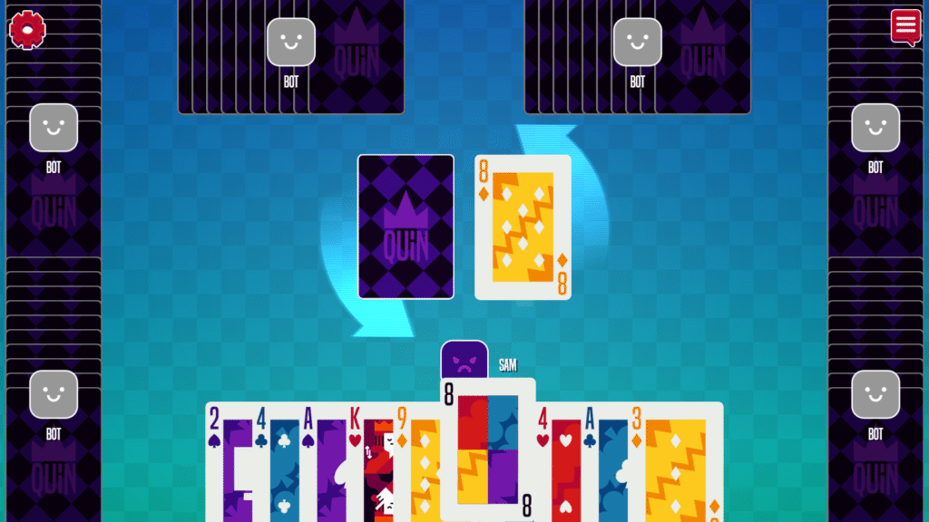 Quin is a casual table game based on the classic card game Crazy Eights, which gave rise to games like UNO, Mau Mau and Can Can.